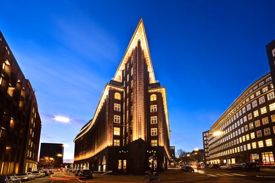 El Chilehaus, un original edificio del 1924 cuya estructura rompió con las bases de la arquitectura de la época, es otra parada imprescindible en la ruta.